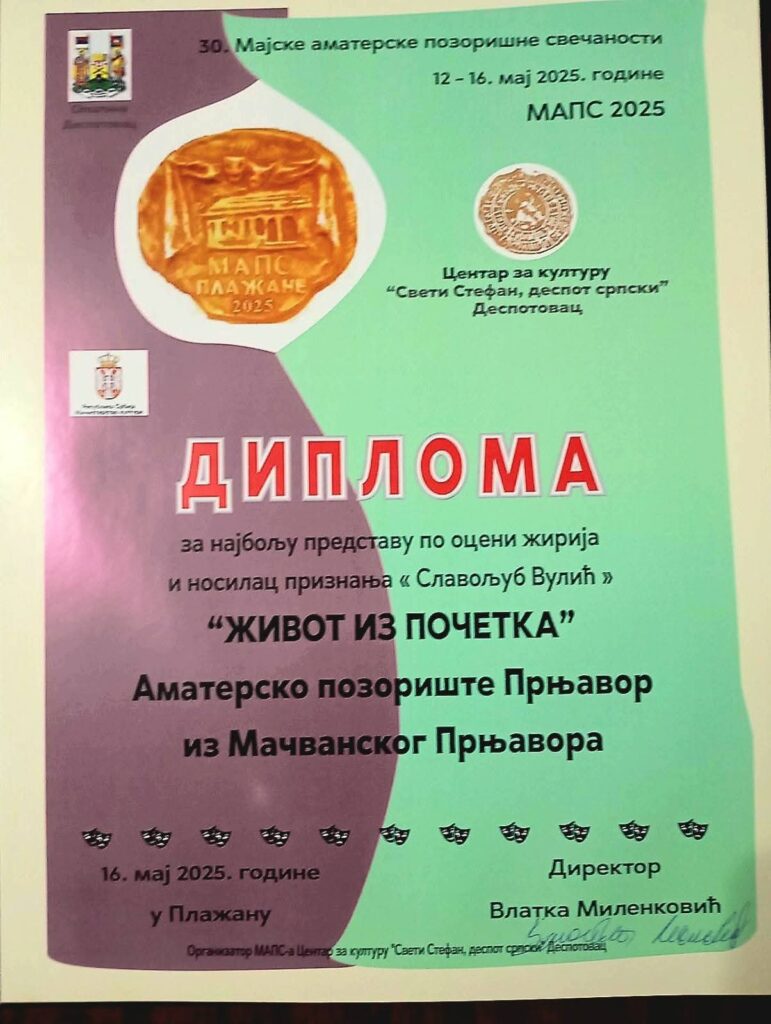 Синоћ је завршен јубиларни 30. фестивал “Мајске аматерске позоришне свечаности”. Деспотовац-Плажане.