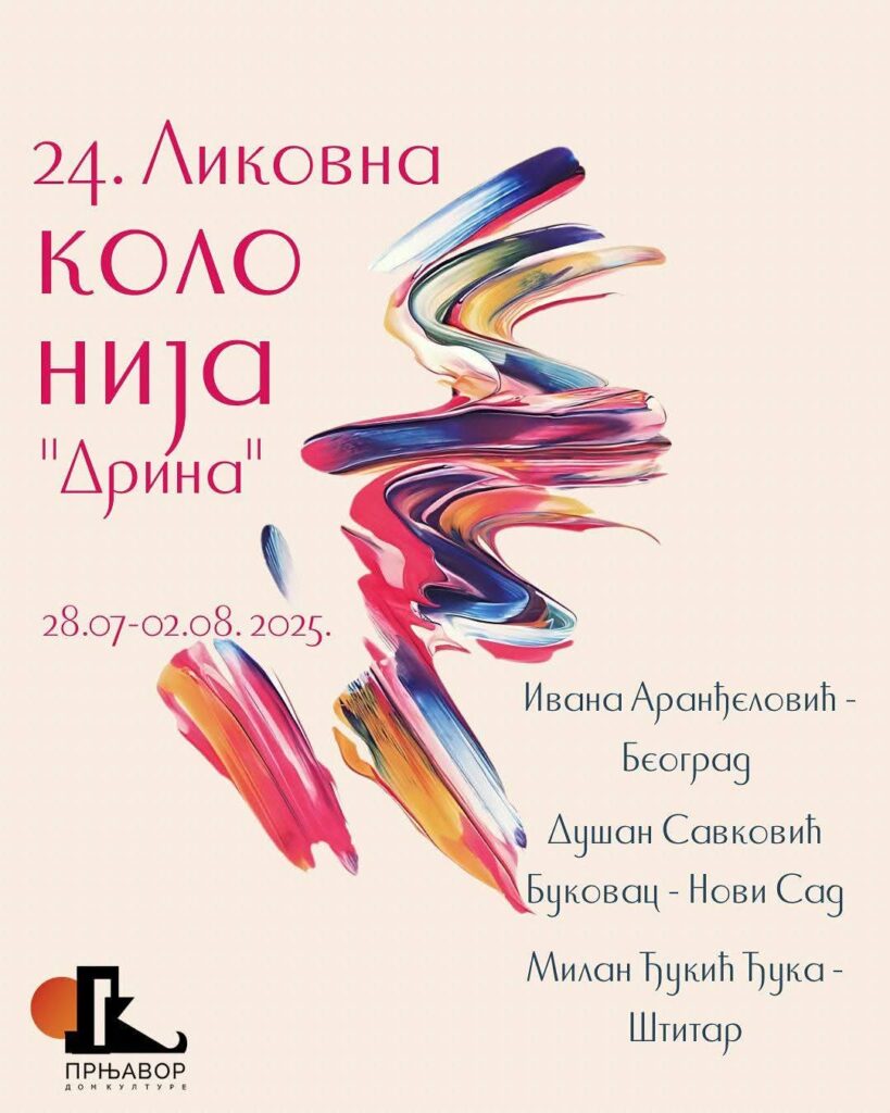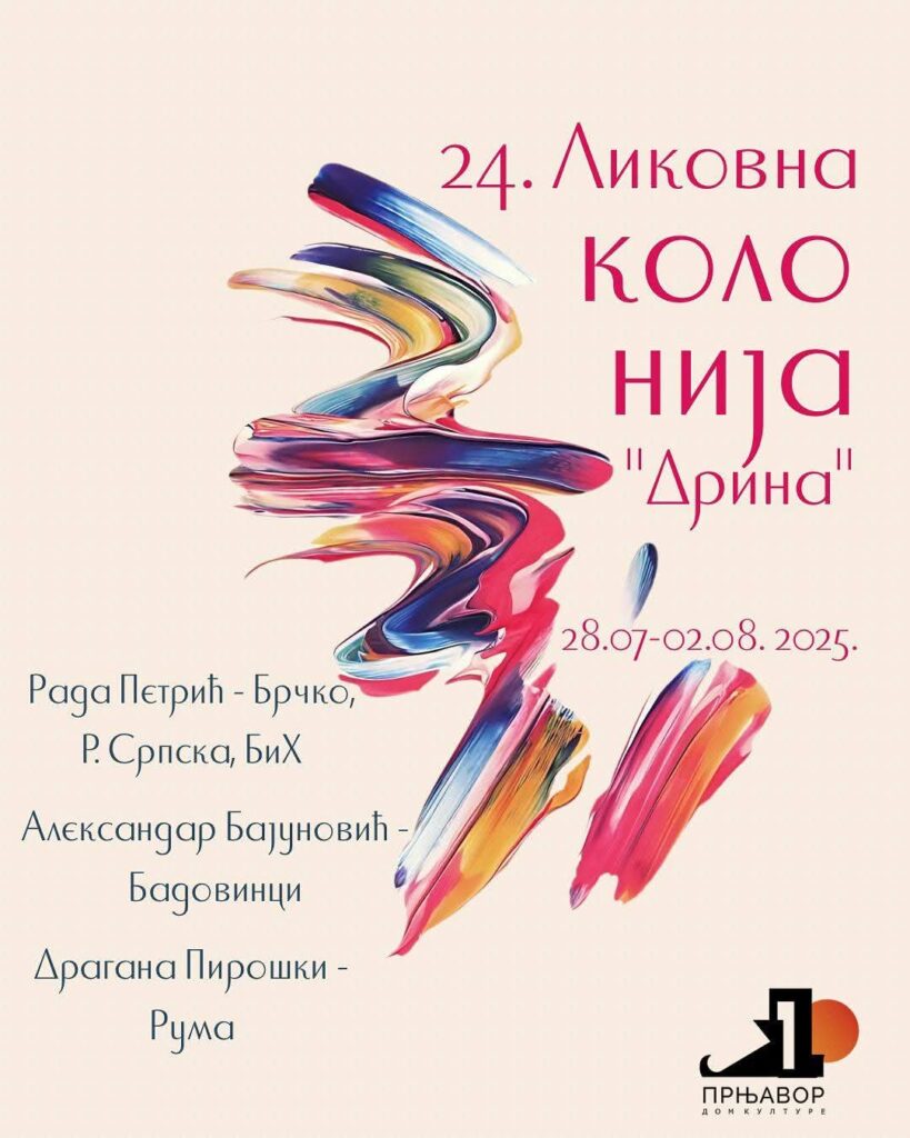 Дом културе “Прњавор” са задовољством најављује 24. ликовну колонију “Дрина”, која ће се одржати од 28. јула до 2. августа 2025. године.