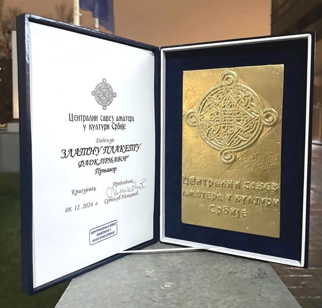 На 24. Републичкој смотри репрезентативних фолклорних ансамбала Србије одржаној у Крагујевцу 7. и 8. децембра 2024. године, Фолклорни ансамбл Дома културе “Прњавор”, према одлуци стручног жирија ( Србољуб Нинковић, кореограф, Бора Талевски, кореограф и професор Балетске школе “Лујо Давичо” у Београду, мр Мирјана Дробац, етномузиколог- музички уредник РТС, Мирослав Митровић, етнолог, виши сарадник у Народном музеју у Београду) освојио је ЗЛАТНУ ПЛАКЕТУ.